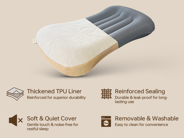 The soft, skin-friendly pillowcase offers a quiet and restful sleep experience. It’s easy to remove and wash, keeping your inflatable travel pillow fresh and hygienic on every trip.